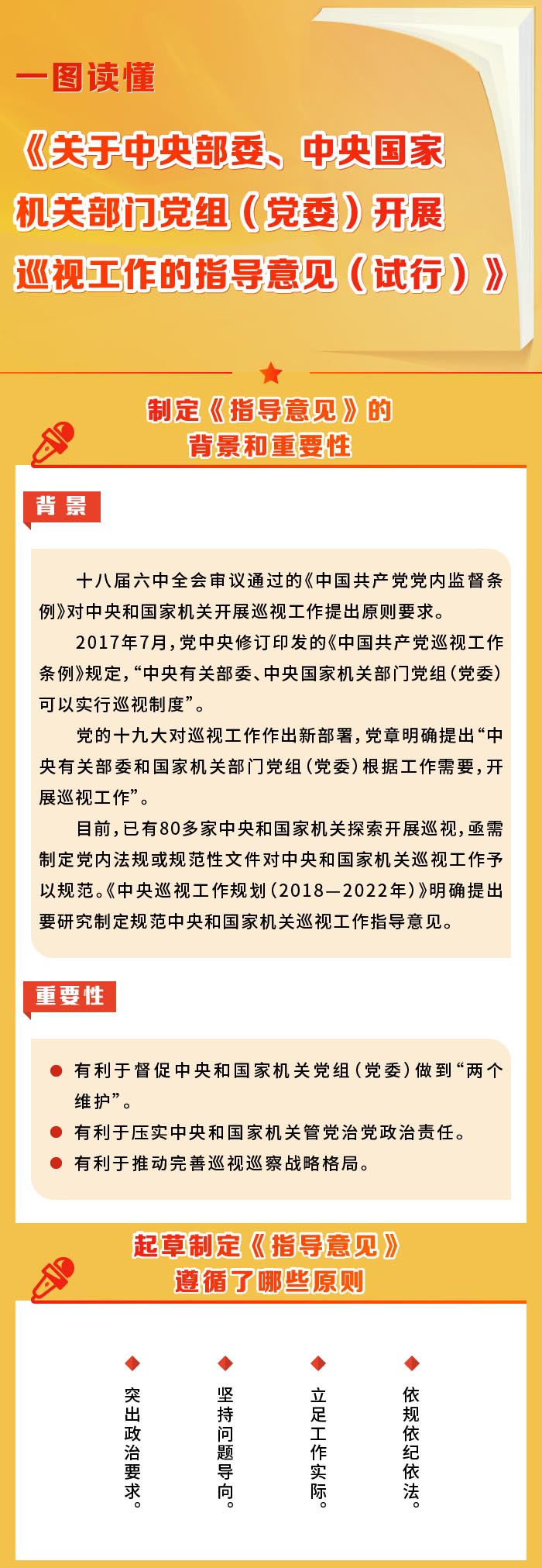 一图读懂《关于中央部委、中央国家机关部门党组(党委)开展巡视工作的指导意见(试行)》