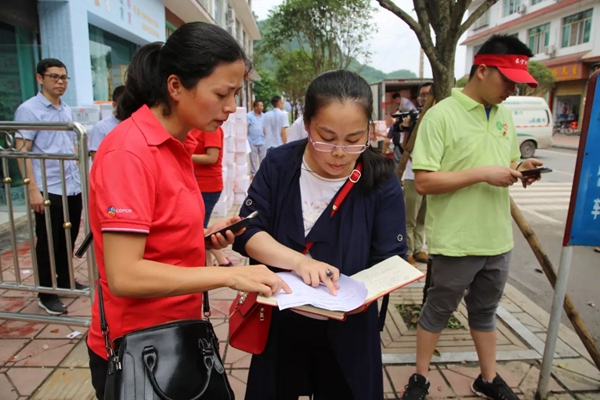 6月18日11时,长宁县纪检监察干部在临时安置点协助工作,给一万余名聚集在此的受灾群众发放方便面、面包等食物和饮用水。