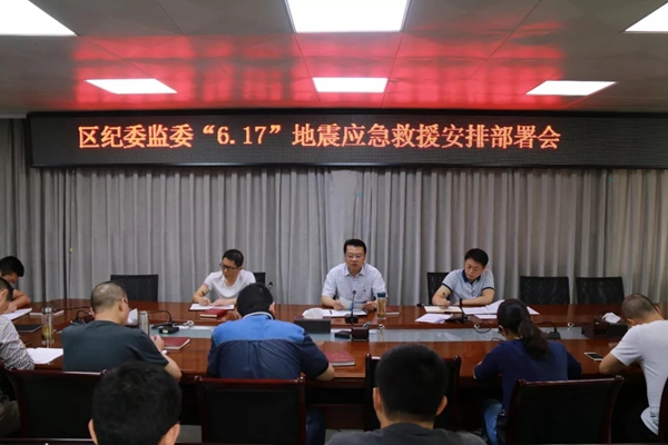 珙县纪委监委召开紧急会议,对抗震救灾工作作出部署,要求全体纪检监察干部立即行动,积极投身抗震救灾工作。目前,该县纪检监察干部已全面投入抗震救灾和灾后入户排查相关工作。