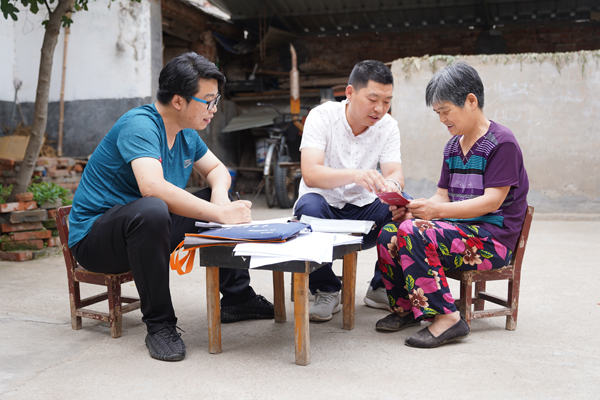河南省漯河市郾城区纪委监委开展纪检干部遍访督查行动,严查群众身边的贪污挪用、截留私分、虚报冒领、优亲厚友等扶贫领域突出问题。(朱红亚 摄)