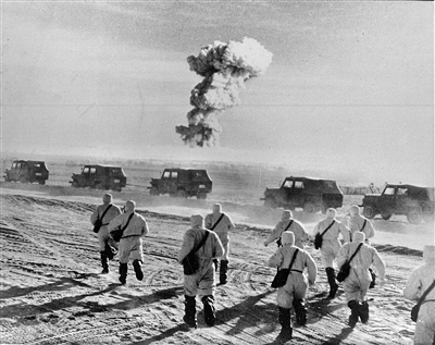 1964年10月16日,我国第一颗原子弹爆炸成功。这是爆炸几分钟后,科研人员进入爆炸现场取样。(资料图片)