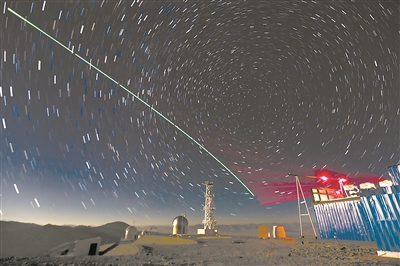 2016年8月16日,我国自主研制的世界上首颗空间量子科学实验卫星“墨子号”发射升空。这是“墨子号”与阿里量子隐形传态实验平台建立天地链路(合成照片,2016年12月9日摄)。新华社记者 金立旺 摄