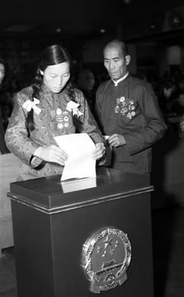 来自广东省的全国人大代表蔡廷锴将军说:“现在是真正的民主,人民有了各项权利,这是中国开天辟地第一次!”