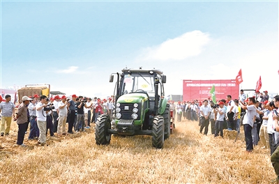 2015年,新一代“耕王”无人驾驶拖拉机进行田间作业。(资料图片)