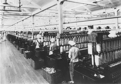 上世纪80年代,纺织工人在青岛国棉六厂车间工作,国棉六厂为民族纺织业作出了巨大贡献。(资料图片)