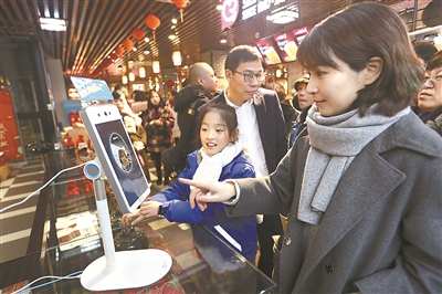 2019年1月16日,在浙江省温州市鹿城区五马商业街,购物市民通过“刷脸”完成支付。(资料图片)