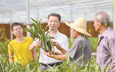 时任福建省政和县县委书记廖俊波在县东涧花卉基地了解村民和返乡企业主种植花卉的情况。新华社记者 魏培全 摄