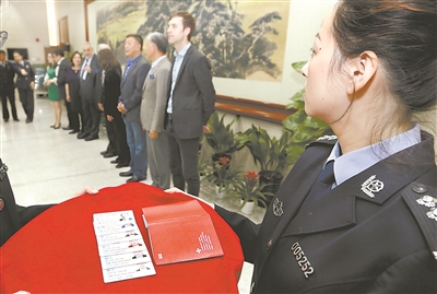 2018年4月2日,6名外籍人士获颁外国人永久居留身份证,这将给他们出入境、在华生活和工作带来诸多便利。新华社记者 凡军 摄
