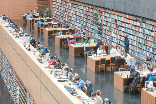 2019年春节期间,读者在中国国家图书馆阅读大厅内看书学习。新华社发(陈晓根 摄)