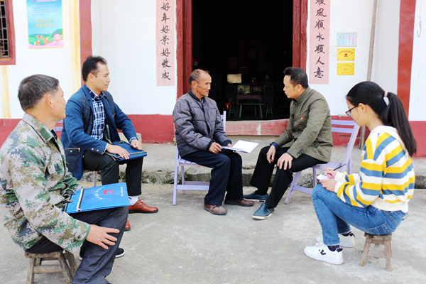 江西省遂川县纪委监委着力加强对民生领域的监督检查,切实解决群众所需所盼,监督检查组向群众了解扶贫政策落实情况。