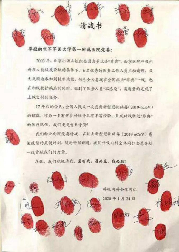 “我是有着15年党龄的党员”“不计报酬、无论生死”,这是共产党员赤诚的誓言。一份份写给党组织的请战书,一个个红色的指印,表达了他们对党的忠诚、对人民的热爱、对自己初心使命的坚守。