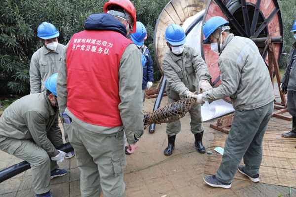 大年初一,国家电网湖北电力共产党员服务队奋战在风雨泥泞的战场上。