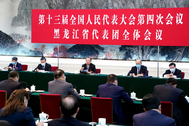 3月5日,中共中央政治局常委、中央纪委书记赵乐际参加十三届全国人大四次会议黑龙江代表团的审议。新华社记者 张领 摄