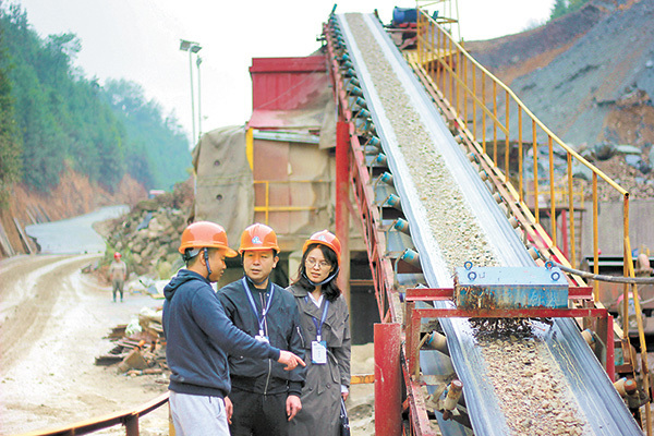 浙江省开化县纪委监委开展室组联动监督,深入采砂、采矿一线,通过现场了解、明察暗访等方式,深挖“沙霸”“矿霸”背后腐败和“保护伞”问题线索。图为11月4日,检查组成员在某砂石企业了解相关情况。余青青 摄