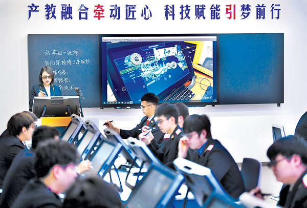 随着人工智能、5G等信息技术的迅速发展,教学工具、课堂形态等都发生了巨大变化。在湖南汽车工程职业学院,虚拟实训中心、“云端训练场”让原本不好实现的实训操作变得简单。该校信息管理中心主任刘星海表示,过去,由于动力电池拆检、发动机故障诊断等核心专业课程的实训教学成本高,学校难以做到“一人一工位”,此外还有一些工种危险性高,难以做到真场实训或者由于空间复杂度高难以开展群体教学。如今,运用VR/AR技术,学校推行了“虚拟仿真前置操作,真场实操后续跟进”的实训教学模式,积极探索5G环境下的远程操控、真场执行的实训方法。通过云端部署实训操作平台,学生可以随时随地按实训任务书远程发出操作指令。机床设备在车间里按指令运行,配套的数字孪生软件生成与实际运行完全一致的数据和影像,用于其他学生观摩和实训成效评判。