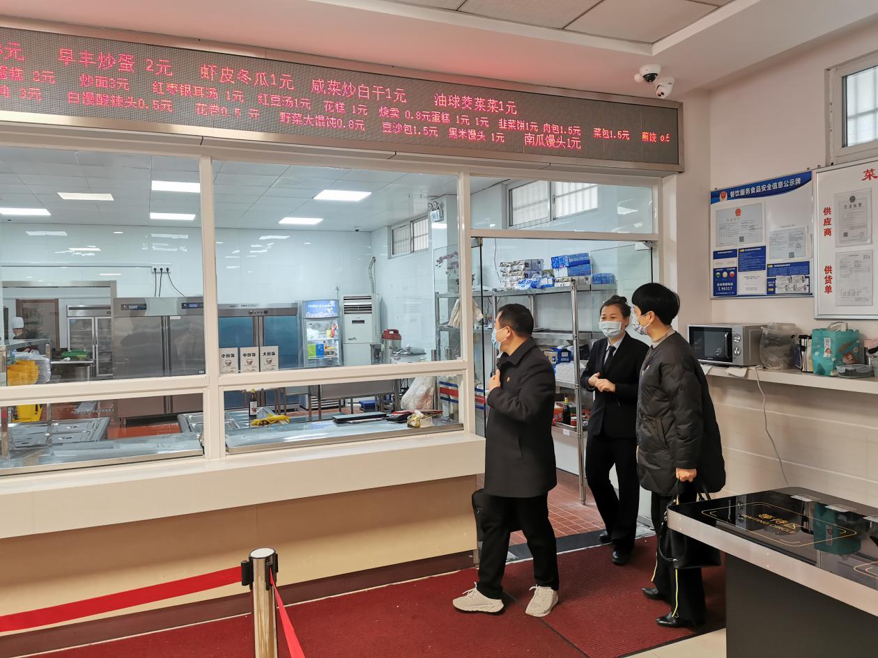 图为检查组查看机关食堂