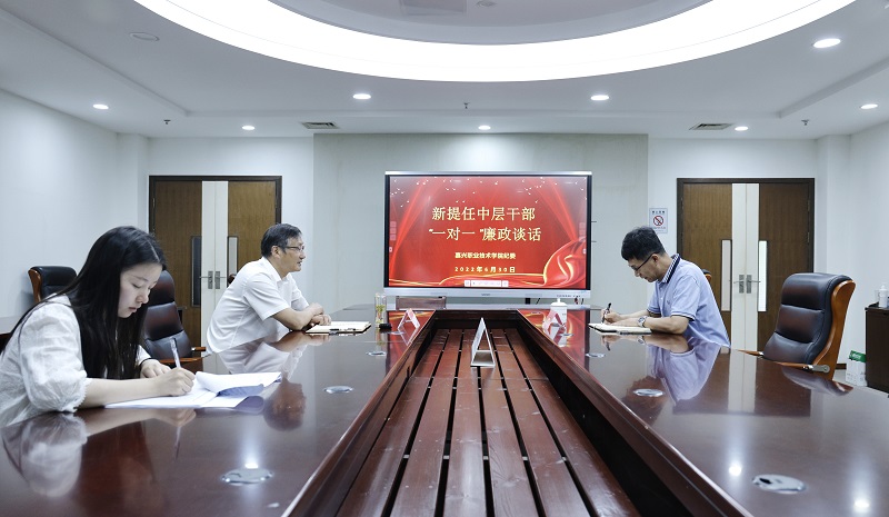 为深入贯彻落实十九届中央纪委六次全会、省纪委十四届七次全会和市纪委八届七次全会部署,落实省纪委办公厅《关于推动高校落实立德树人根本任务专项监督工作方案》和省教育厅《关于落实省委第十三轮巡视发现高校存在共性问题整改工作方案》等通知精神,根据市纪委《关于建立“三步一闭环”廉政谈话机制的通知》要求,嘉兴职业技术学院纪委近期开展了30名新提拔中层干部“一对一”廉政谈话。