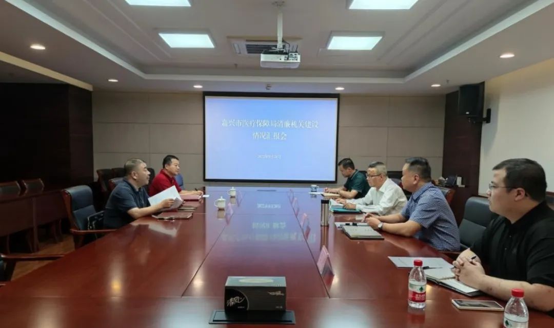 图为市直机关纪检监察工委调研指导嘉兴市医保局清廉机关建设工作。