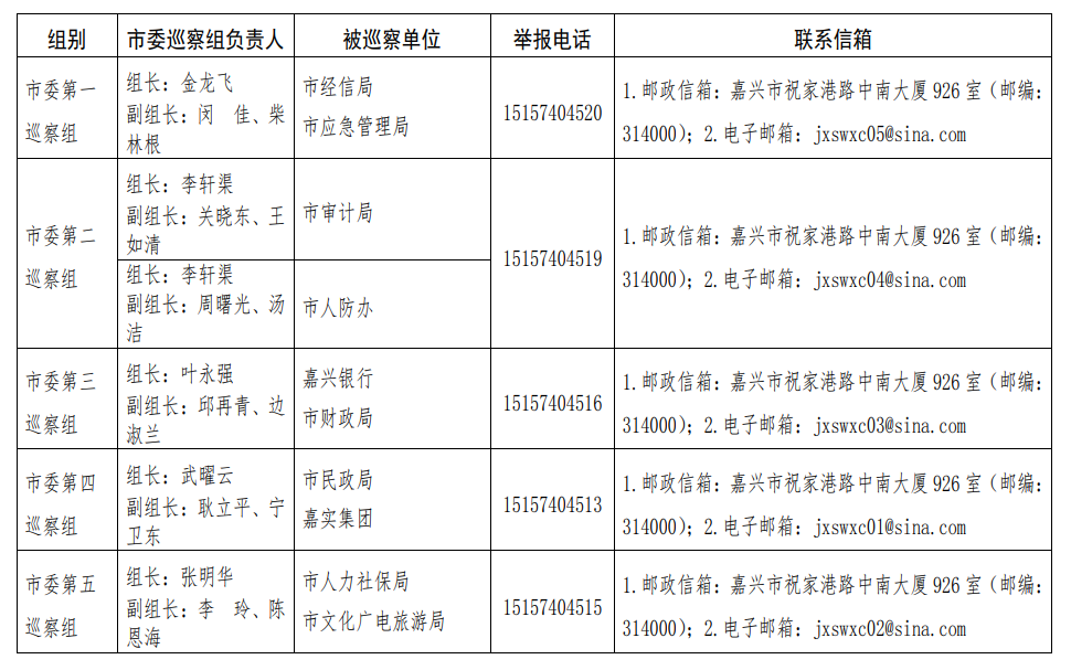 市委巡察组对市经信局、嘉兴银行、嘉实集团等9家单位开展常规巡察,聚焦落实党的路线方针政策和中央、省委、市委重大决策部署的情况,聚焦落实全面从严治党战略部署情况,聚焦落实新时代党的组织路线情况,聚焦整改落实情况;根据全省人防系统腐败问题专项治理统一部署,对市人防办开展机动式巡察,重点是了解党组履行主体责任、派驻纪检监察机构履行监督责任等情况,以及存在的违纪违法问题。