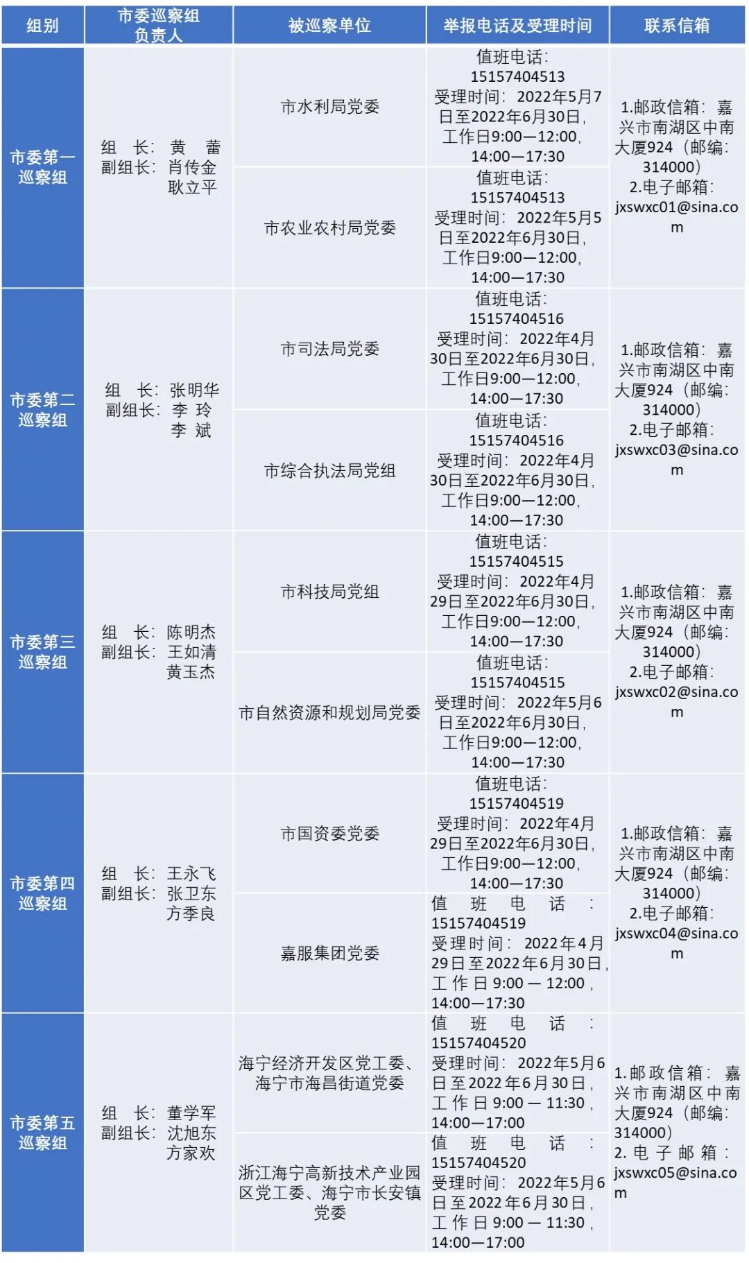 经市委批准,九届市委第一轮巡察对市科技局党组,市司法局党委,市自然资源和规划局党委,市水利局党委,市农业农村局党委,市国资委党委,市综合执法局党组,嘉服集团党委,海宁经济开发区党工委、海宁市海昌街道党委,浙江海宁高新技术产业园区党工委、海宁市长安镇党委等10个单位进行巡察。截至5月7日,5个市委巡察组全部完成进驻。