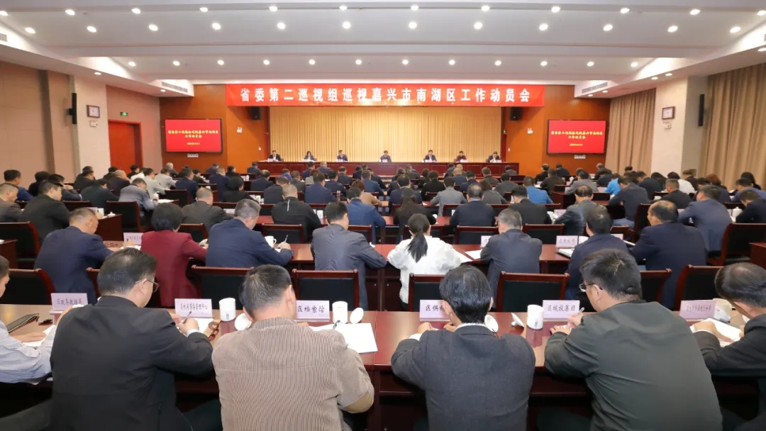 根据省委统一部署,2020年11月11日上午,省委第二巡视组巡视嘉兴市南湖区工作动员会议召开。会前,省委巡视工作领导小组成员、办公室主任徐鸣华向南湖区委书记朱苗传达了省委书记专题会议的有关精神。会上,省委第二巡视组组长宋涛就即将开展的巡视作了动员讲话,徐鸣华就配合做好巡视工作提出要求,朱苗作表态发言。南湖区委副书记、区长邵潘锋主持会议。