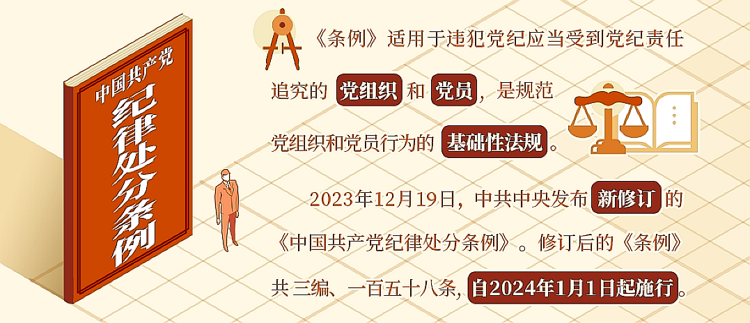 2023年12月19日,中共中央发布新修订的《中国共产党纪律处分条例》。修订后的《条例》共三编、一百五十八条,自2024年1月1日起施行。