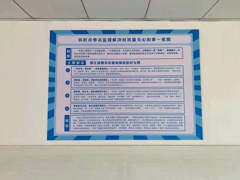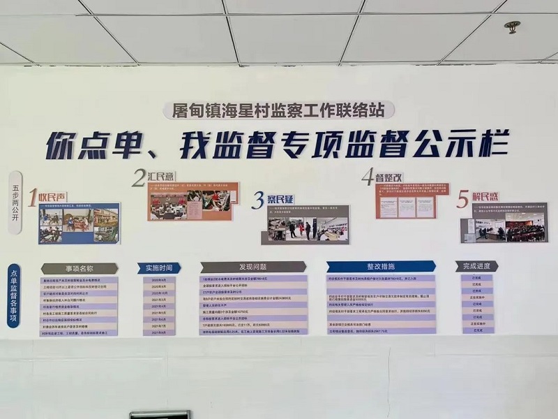 根据“点单”问题,海星村约请镇纪委委员、镇“三资”管理办干部下村开展重点督查、网格“巡诊”,厘清并解决问题,实现镇、村两级清廉村居建设的无缝对接。该村还利用村清廉长廊、农民公园等载体,将38项小微权力以通俗易懂的方式公开展示,让群众眼里“清楚”心里“亮堂”,营造“人人都是监察员”的浓厚氛围。