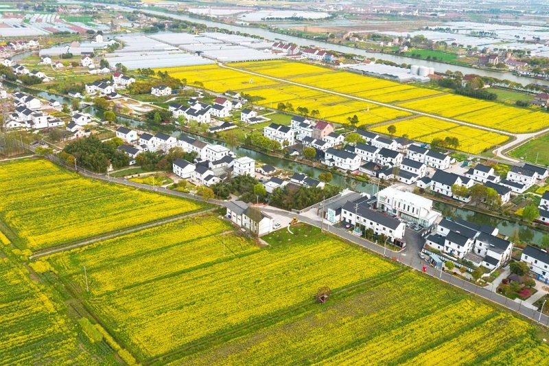 走进嘉善县姚庄镇横港村,一派绿意盎然,庭院花卉在竹林的绿荫下竞相吐艳,水墨画装点在粉刷一新的农房外立面上。