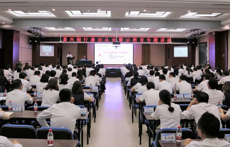 比如在新员工入职时,为切实把好廉洁源头关,银行会精心准备从业第一课,“今年入职嘉兴银行后,我的岗前培训第一课便是驻行纪检监察组给我们上的,题目是《上好“第一课” 系牢“第一扣”》,给我留下了特别深的印象,这也让我意识到我们银行从业人员必须严守底线。”平湖支行新入职员工罗金说。此外,银行还会举办廉洁从业警示教育专题讲座、开展岗位廉洁风险排查等系列活动,增强员工合规守矩意识,构筑起防腐拒变的道德防线。