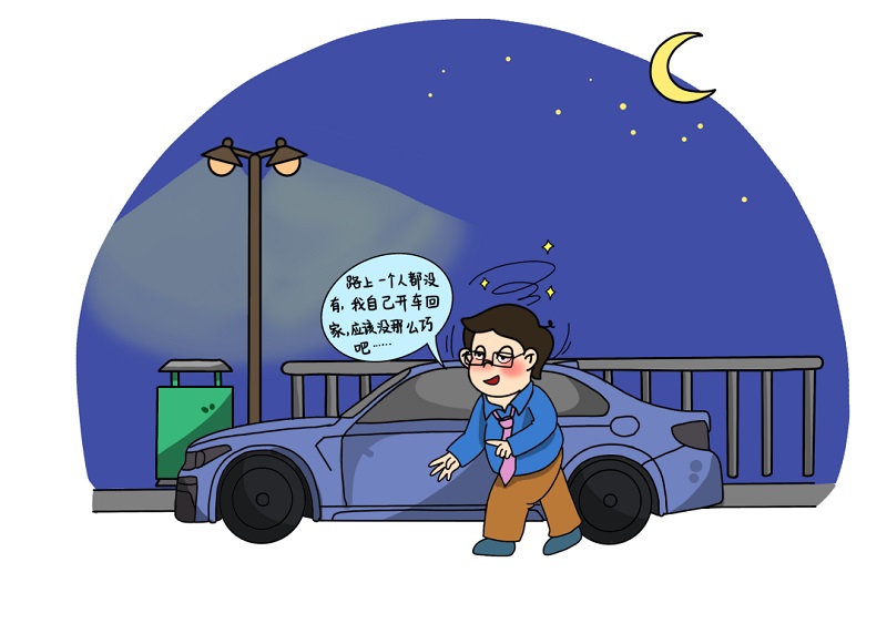 徐江川驾车来到路面,发现四下无人,怀着“不会有什么事”的侥幸心理,他放弃了叫代驾的想法,自己开车回家。