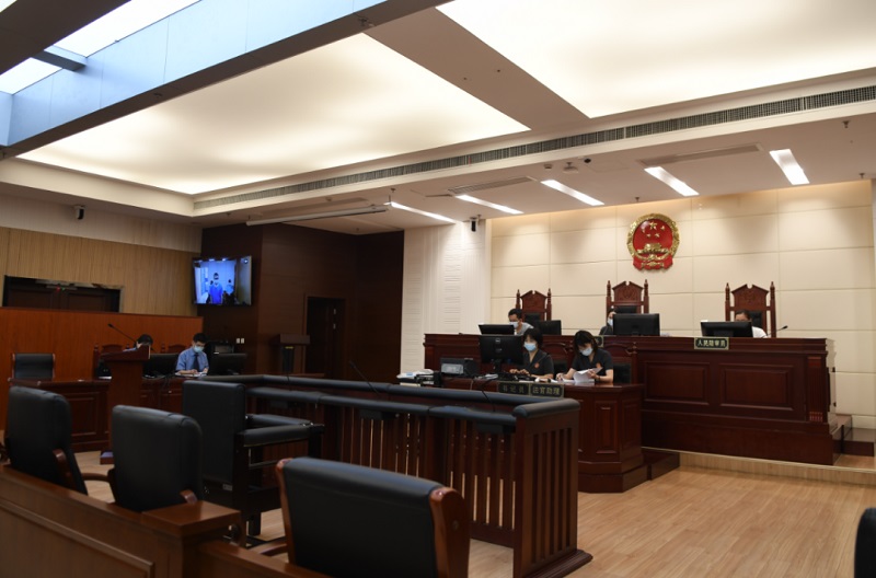 2021年8月16日,海盐县人民法院公开宣判,原海盐县公路管理段路政大队副大队长、治超站站长金兵生利用职务之便,非法收受他人财物70余万元,其行为构成受贿罪,且数额巨大,被依法判处有期徒刑三年七个月,并处罚金人民币二十五万元,违法所得予以追缴。图为法院庭审现场。海盐县纪委监委供稿 沈玲丽 摄