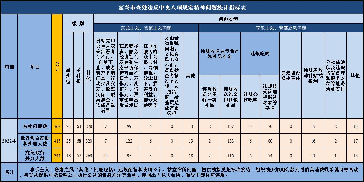 嘉兴2022年查处违反中央八项规定精神问题367起