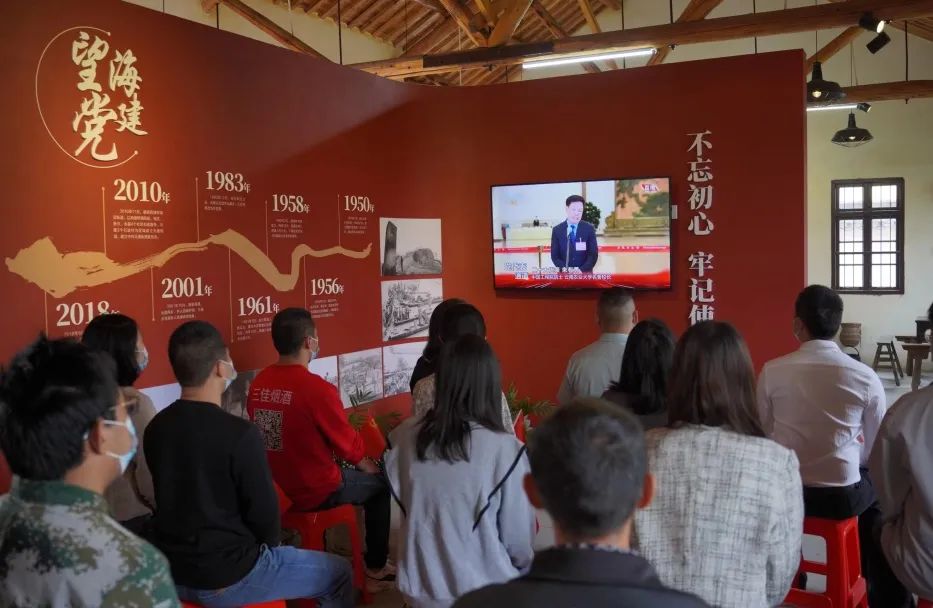 海盐县纪委县监委组织纪检监察干部在中共待葑庙支部旧址集中观看中共二十大开幕式直播。
